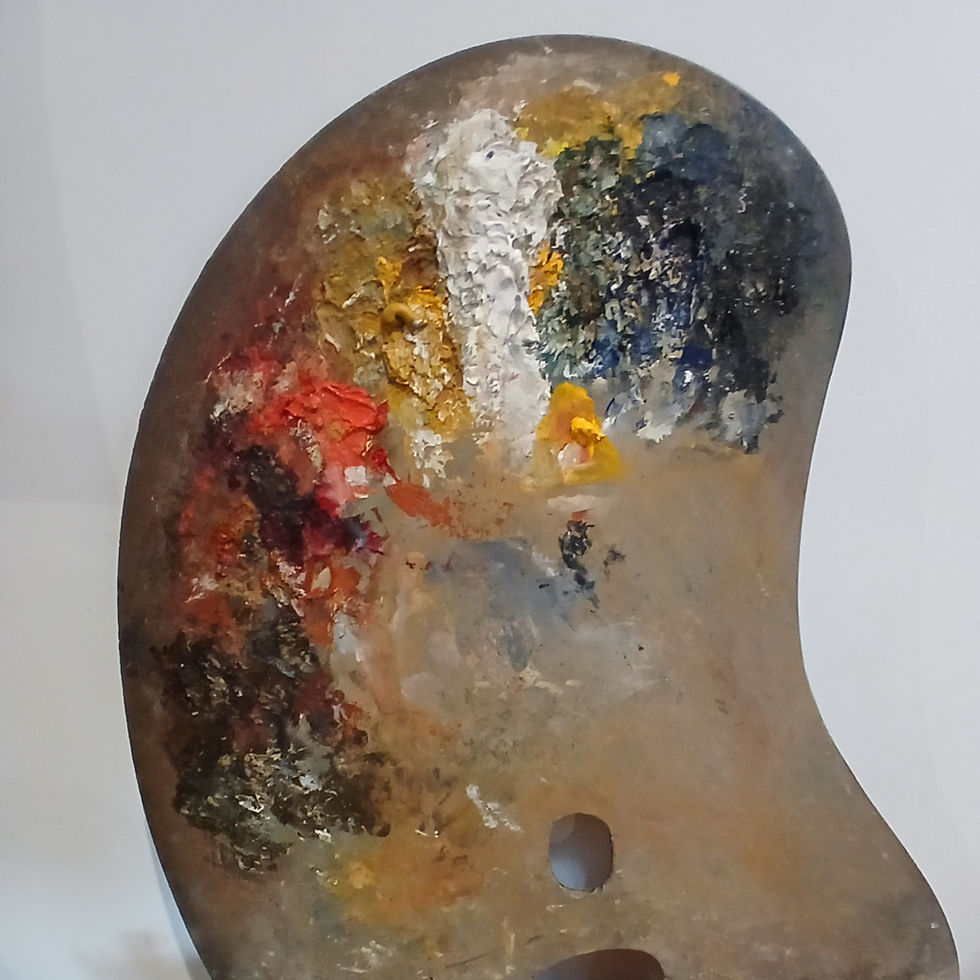 A truly stunning and very large artists palette with layers of paint built up over time making this a beautiful piece of art for the wall, 63cm at its longest and 40cm at its widest. Deep vibrant colours across the palette, and in very good condition, we have another 2 nice examples in the shop if you wanted to put together a little collection.